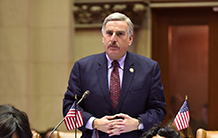 State Assemblyman David Weprin (D-Fresh Meadows) stood with prison reform advocates on the steps of City Hall against the state’s proposal to reduce the number of allowed visitation days in minimum security jails.